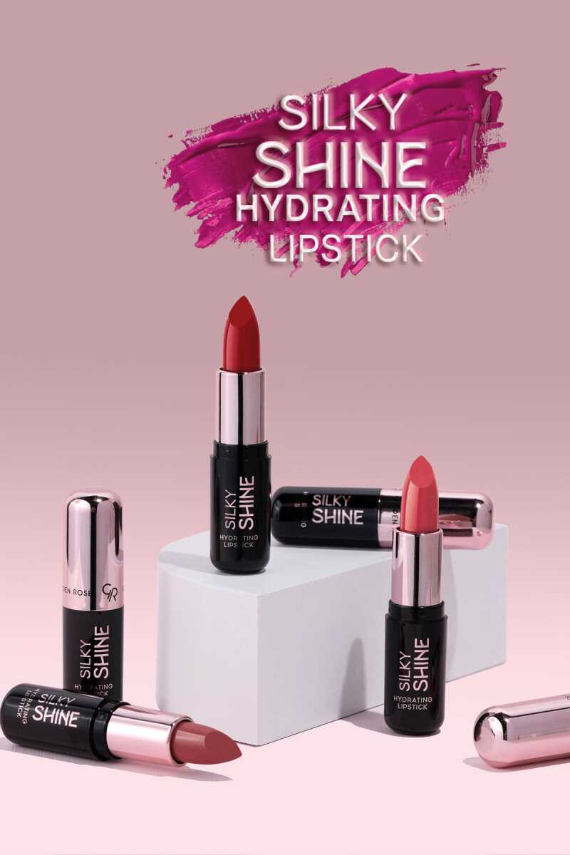 Dudaklara parlak ve canlı bir renk kazandıran, nemlendirme özelliğine sahip SILKY SHINE HYDRATING LIPSTICK, hafif ve yumuşak formülü ile pürüzsüz bir şekilde kolayca uygulanır. Dudakları besleyen ve nemlendiren Ceramide NP, Jojoba ve Maracuja yağı ve E vitamini ile zenginleştirilmiştir. 24 farklı renk seçeneği ile her tarza ve cilt tonuna uygun renk seçenekleri sunar.